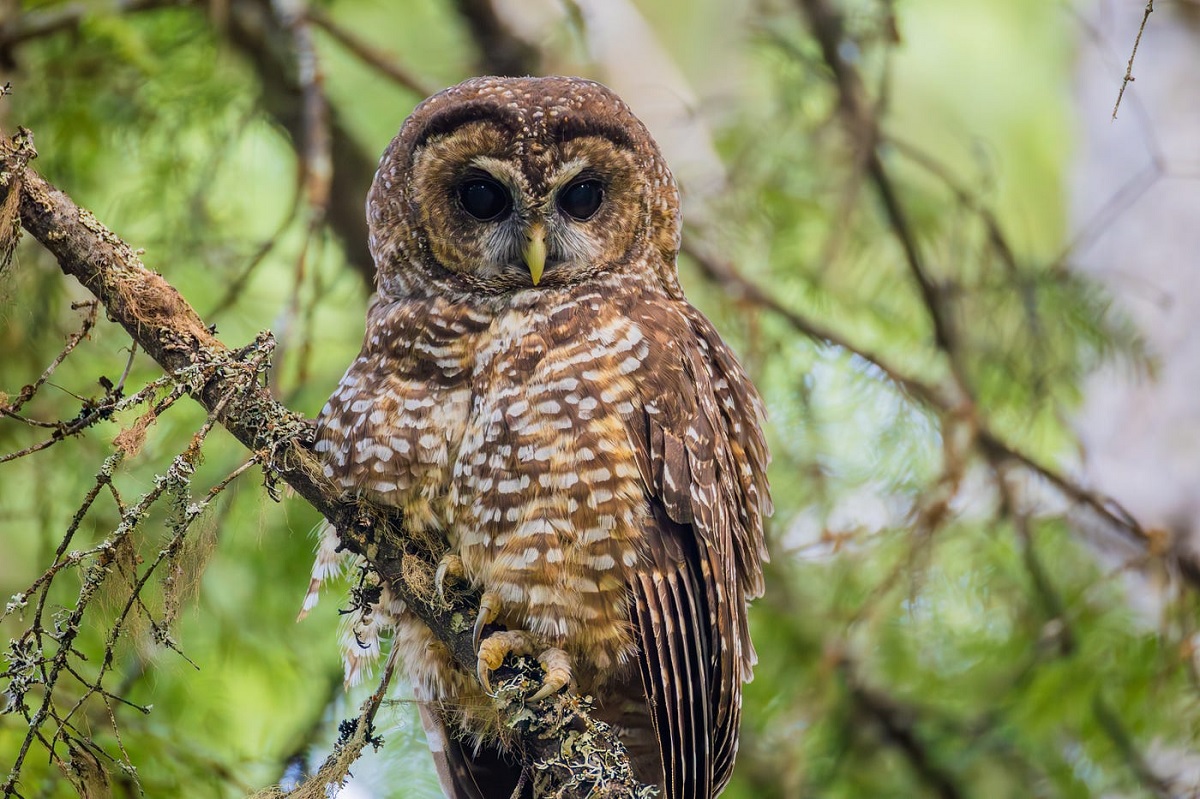 Spotted owls are almost strictly nocturnal, with peak activity occurring during the night. They tend to remain hidden during daylight hours in shaded, old-growth forest canopies, minimizing detection by predators and humans. Spotted owls exhibit stealthy and patient behavior, often waiting quietly for prey to move rather than actively pursuing it. Both species display territoriality, defending their nesting and hunting grounds from intruders. Observing these behavioral patterns helps bird watchers and researchers understand how habitat, prey availability, and environmental conditions influence daily routines and survival strategies.